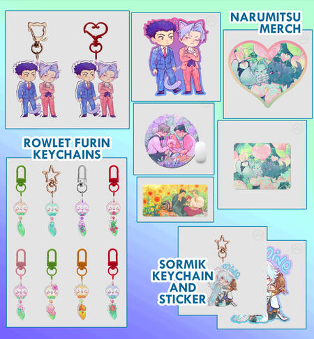 keychains, stickers, deskpads / mousepads